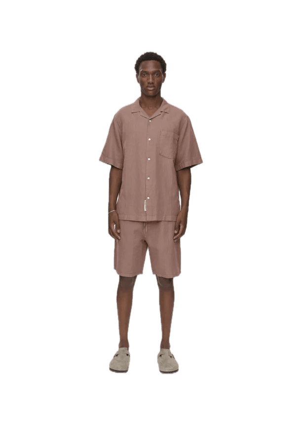 Questa camicia a maniche corte con bottoni presenta una vestibilità comoda, un colletto classico e un design pulito e minimalista. Realizzata in un morbido misto cotone e lino, è dotata di una tasca sul petto. Perfetta per l’uso quotidiano o per essere indossata a strati.