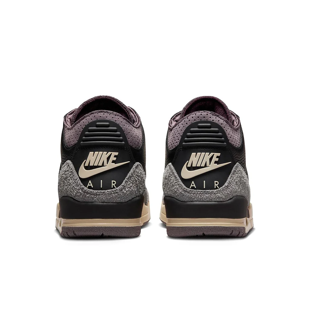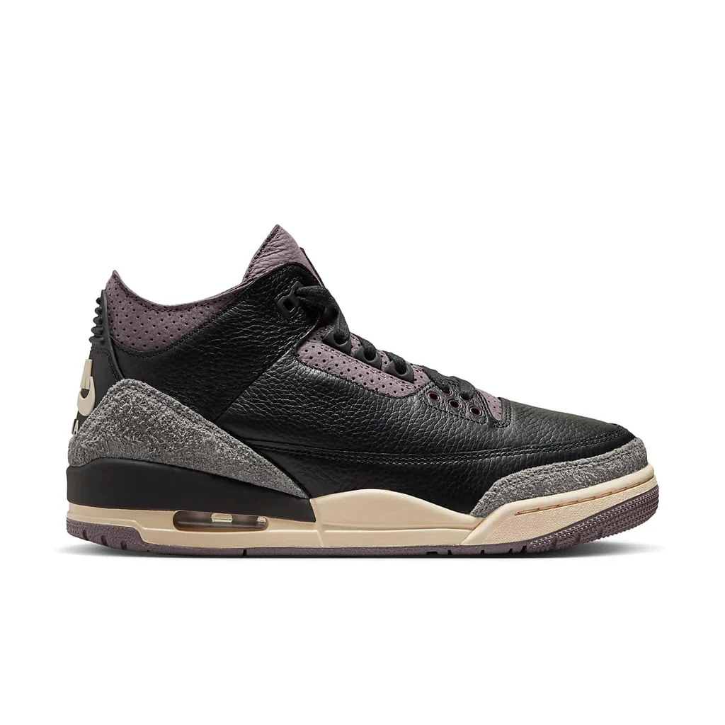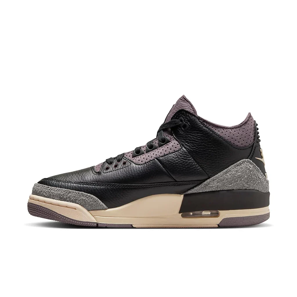 La collaborazione tra A Ma Maniere e Jordan Brand continua a sorprendere con l’uscita delle Air Jordan 3 WMNS “Black”. Questa sneaker rappresenta l’incontro perfetto tra l’eleganza sofisticata di A Ma Maniere e l’eredità sportiva della linea Air Jordan. La tomaia è realizzata in una lussuosa combinazione di pelle nera e dettagli scamosciati, con accenti in tonalità “Violet Ore” che aggiungono un tocco di raffinatezza. Il design minimalista ma potente rende omaggio alla cultura urbana e alla passione per lo streetwear di alta gamma.