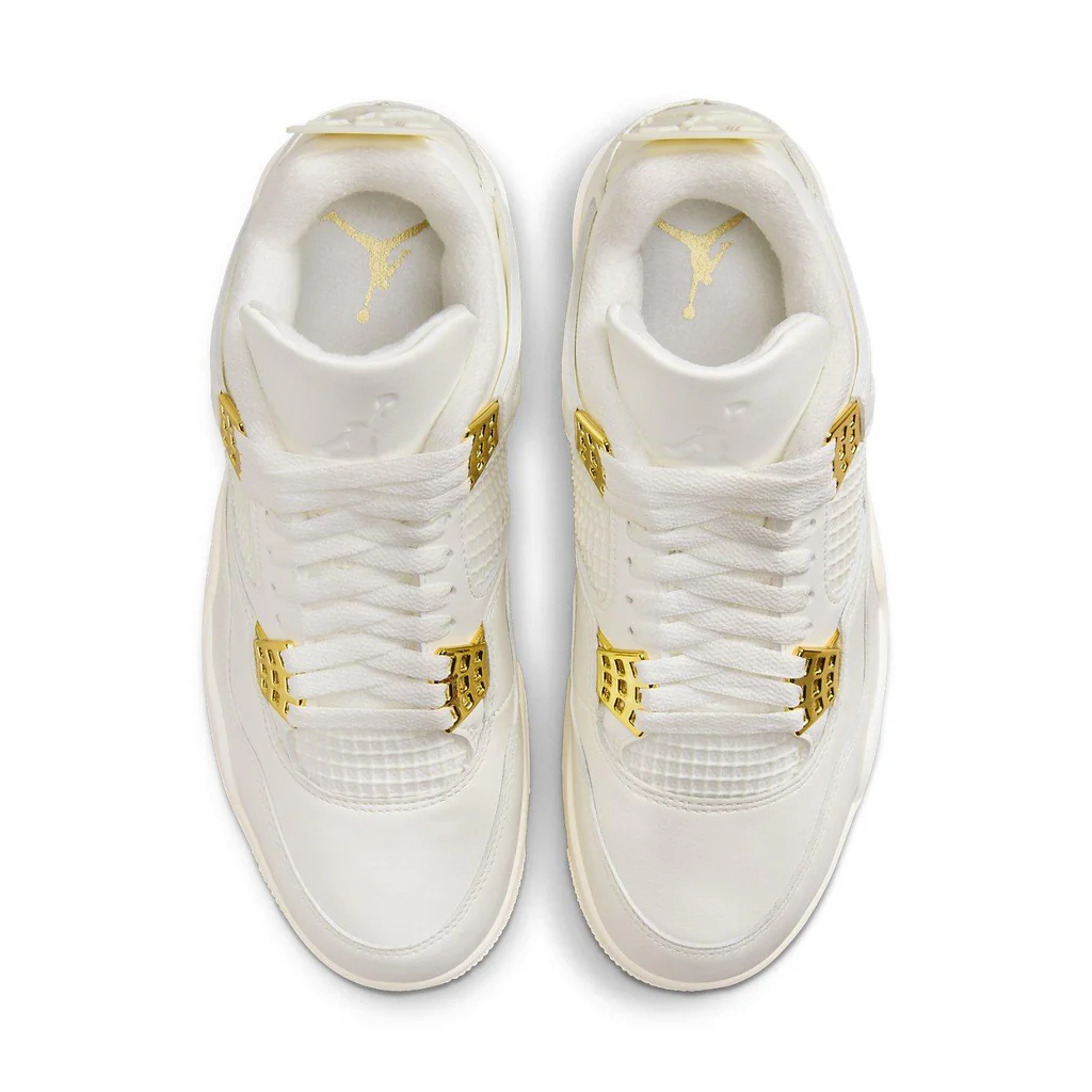 Le Air Jordan 4 Retro ‘Metallic Gold’ offrono un’estetica pulita e raffinata alla silhouette iconica, presentando una sofisticata tonalità avorio su tutta la sua costruzione in pelle liscia. Questo modello è valorizzato da una rete ventilata sui pannelli laterali e da accattivanti occhielli in oro metallico per un tocco di eleganza. Abbellite con il distintivo logo Jumpman sia sulla lingua che sulla linguetta del tallone scolpita, si distinguono per design e riconoscibilità. La sua intersuola, coordinata nel colore in un sottile avorio, incorpora un’unità Air-sole visibile posizionata nel tallone, garantendo ammortizzazione e comfort leggeri ad ogni passo. La durabilità e la funzionalità della scarpa sono ulteriormente rafforzate da un motivo a spina di pesce color crema sulla suola, progettato per offrire una trazione e una presa superiori.